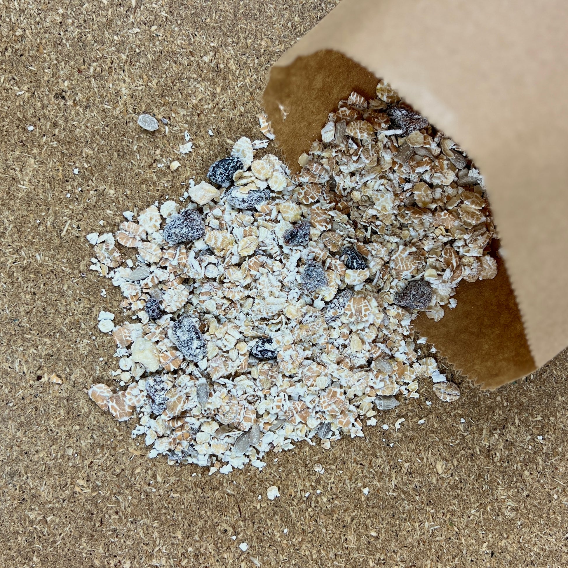 Porridge OATS, WHEAT Flakes, BARLEY Flakes, Sultanas, Thompson Raisins, Chopped Dates, Sunflower Seeds, Currants, Toasted Coconut Chips, Chopped Dried Apple, Whole ALMONDS, redskin peanuts, Chopped Apricots, Roasted HAZELNUTS