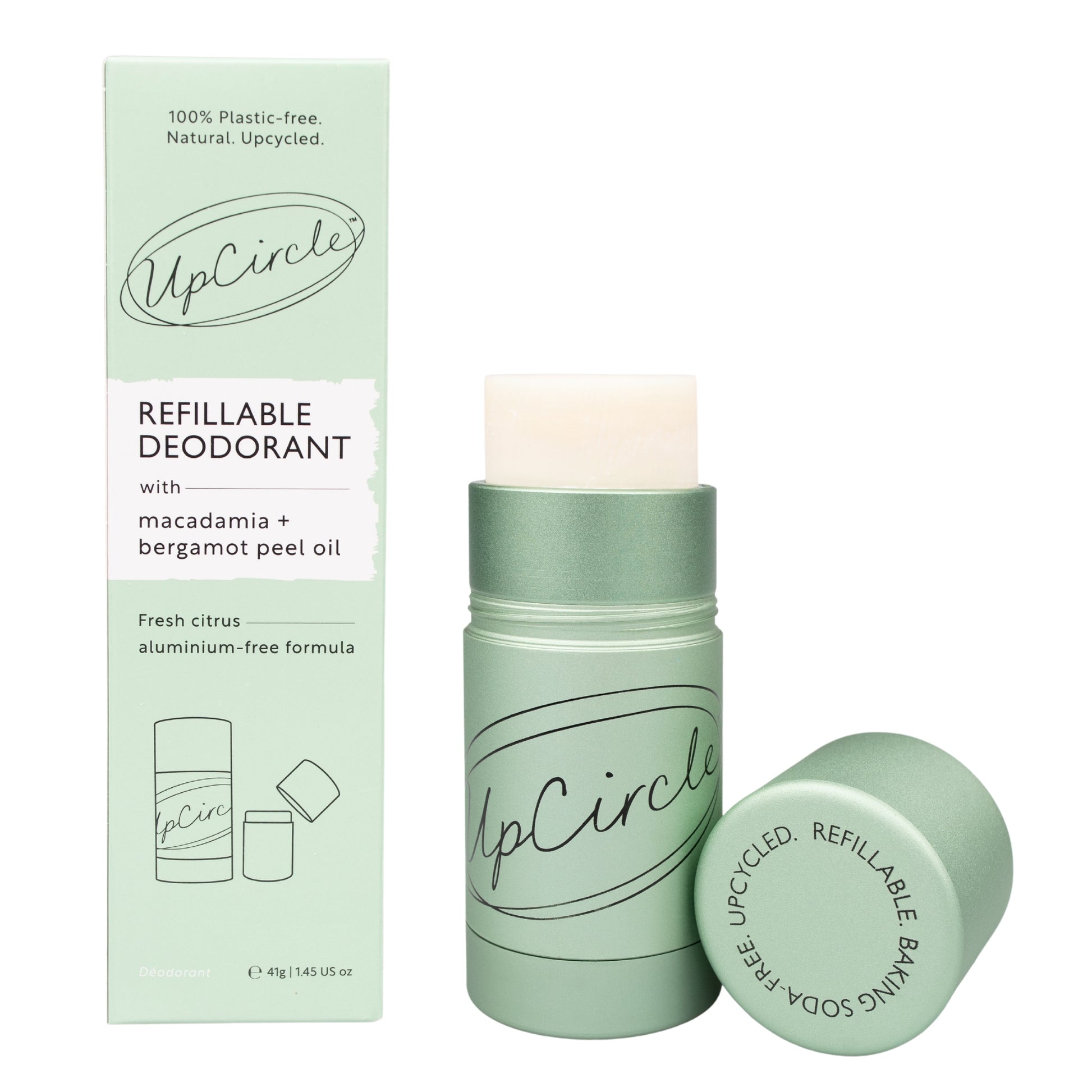 Experience all-day freshness with Upcircle's refillable deodorant! Made without harmful chemicals, our deodorant comes in a sleek aluminium case and smells amazing. Make the switch to a sustainable and pleasant-smelling deodorant now!